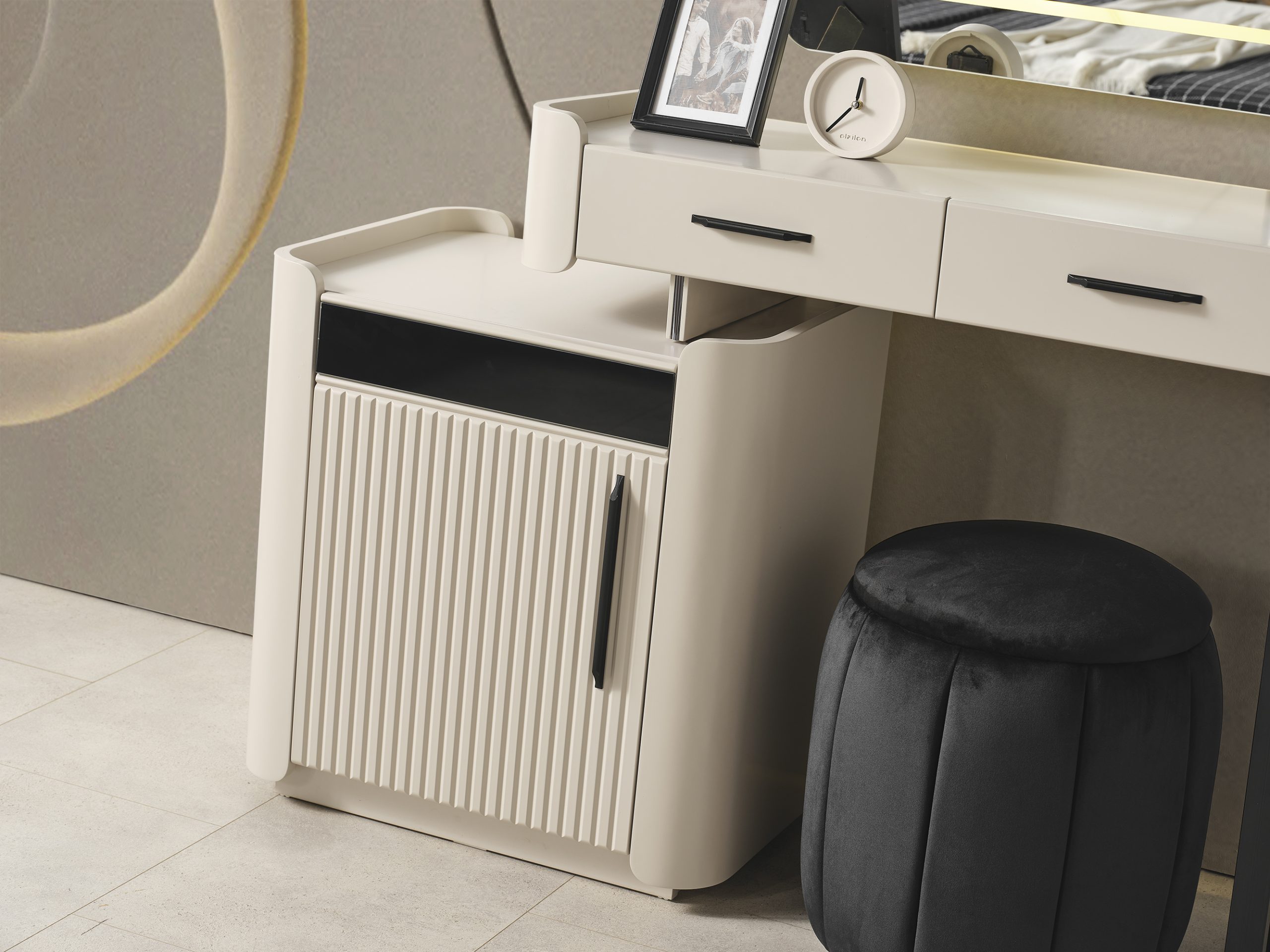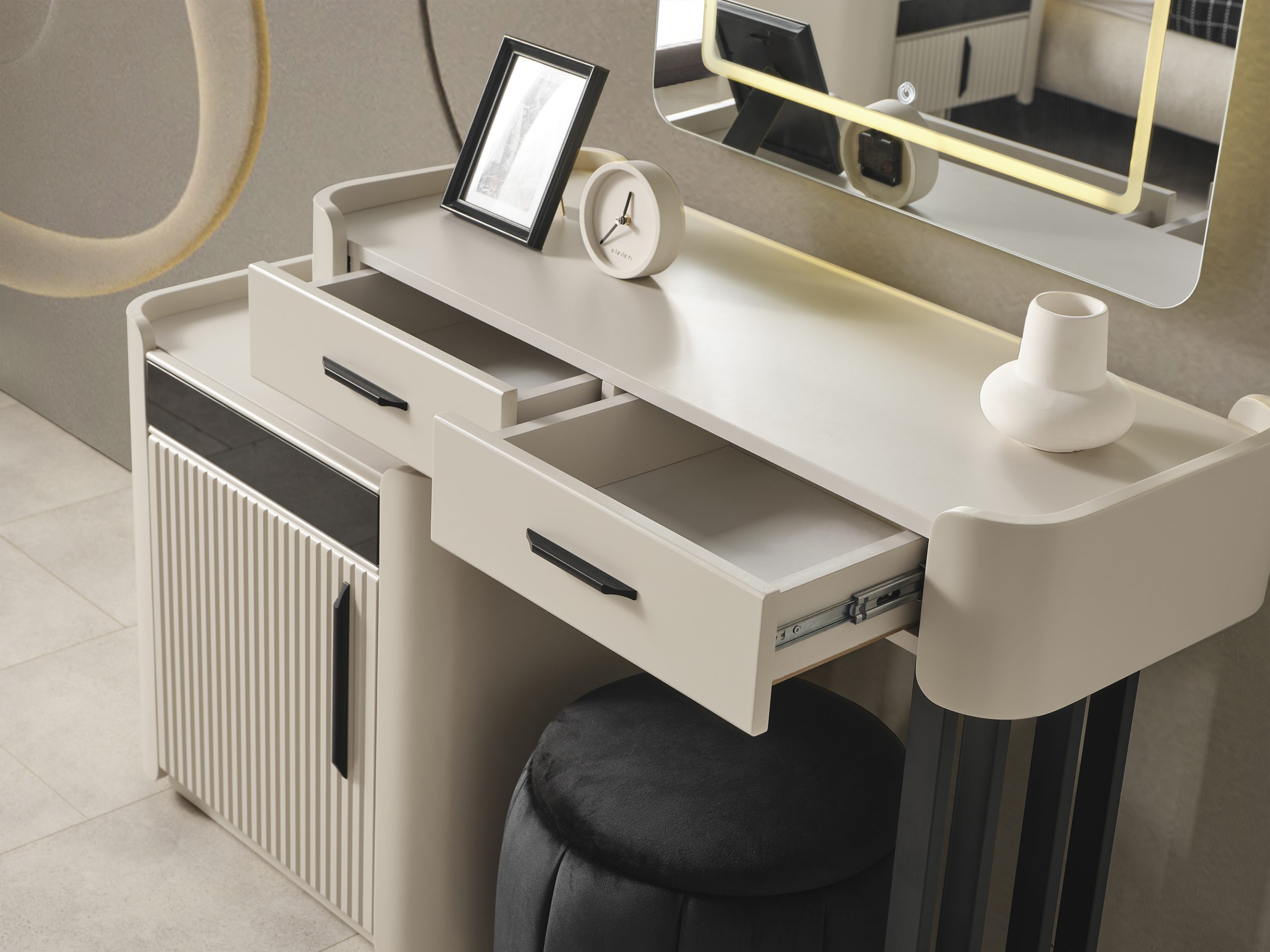 Şifonyer ve aynasından oluşmaktadır. Ayakları ahşaptır.