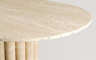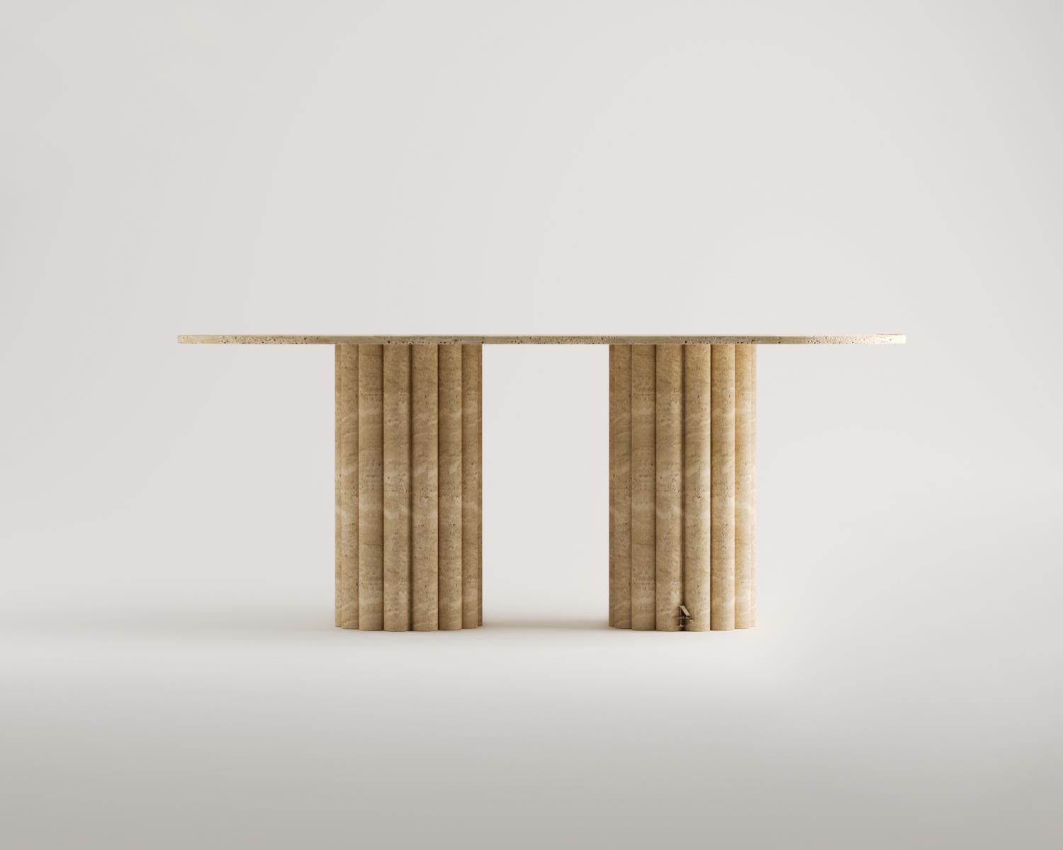Çıtalı 2 Sütunlu Traverten Yemek Masası