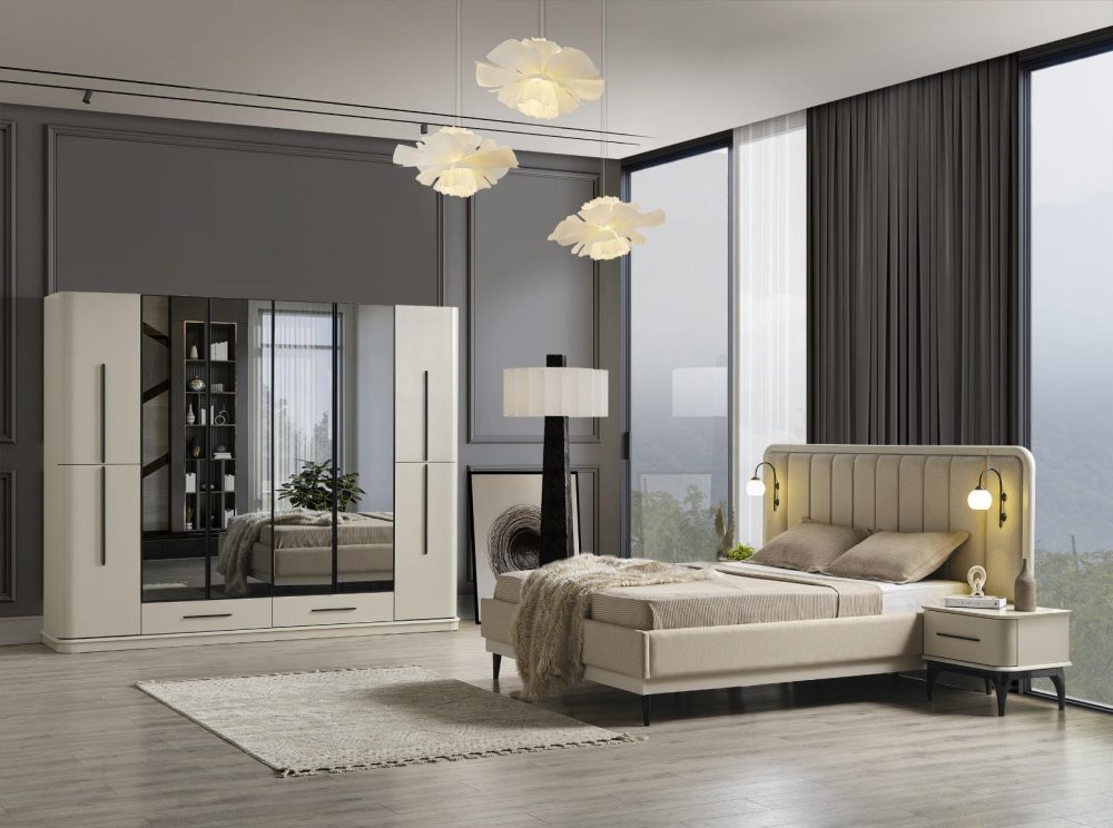 Dolap, Karyola, Karyola Başucu, Şifonyer ve Aynası, 2 Adet Komodin (Takım içeriğini bazalı karyola olarak değiştirebilirsiniz.)