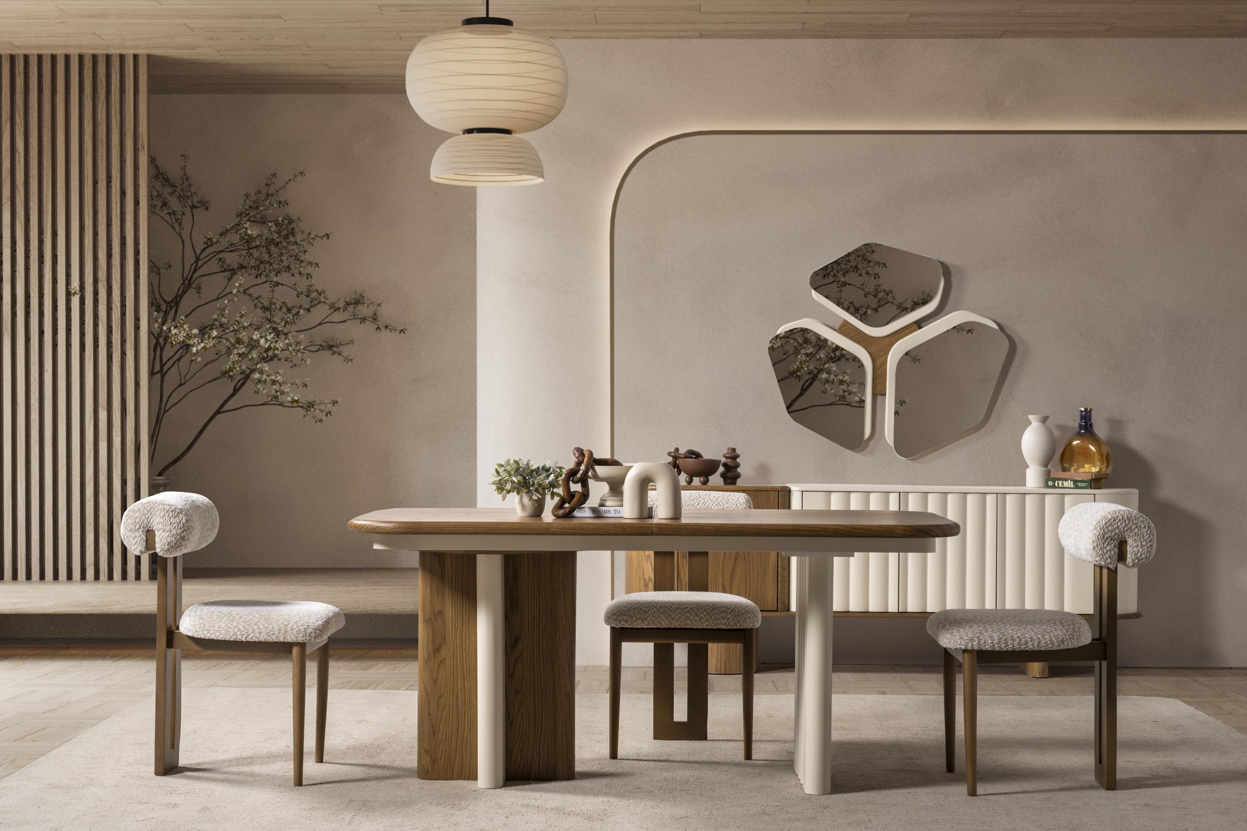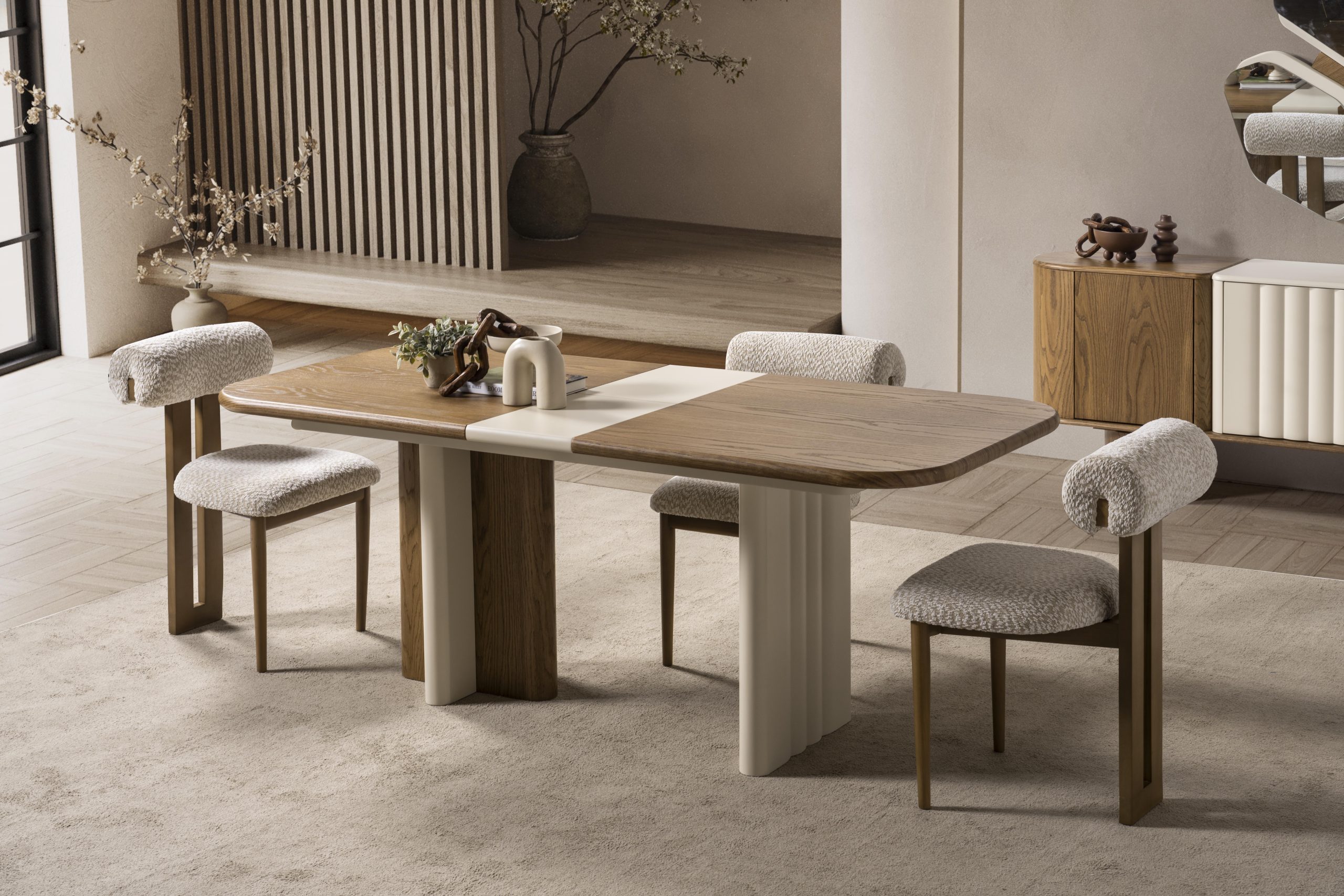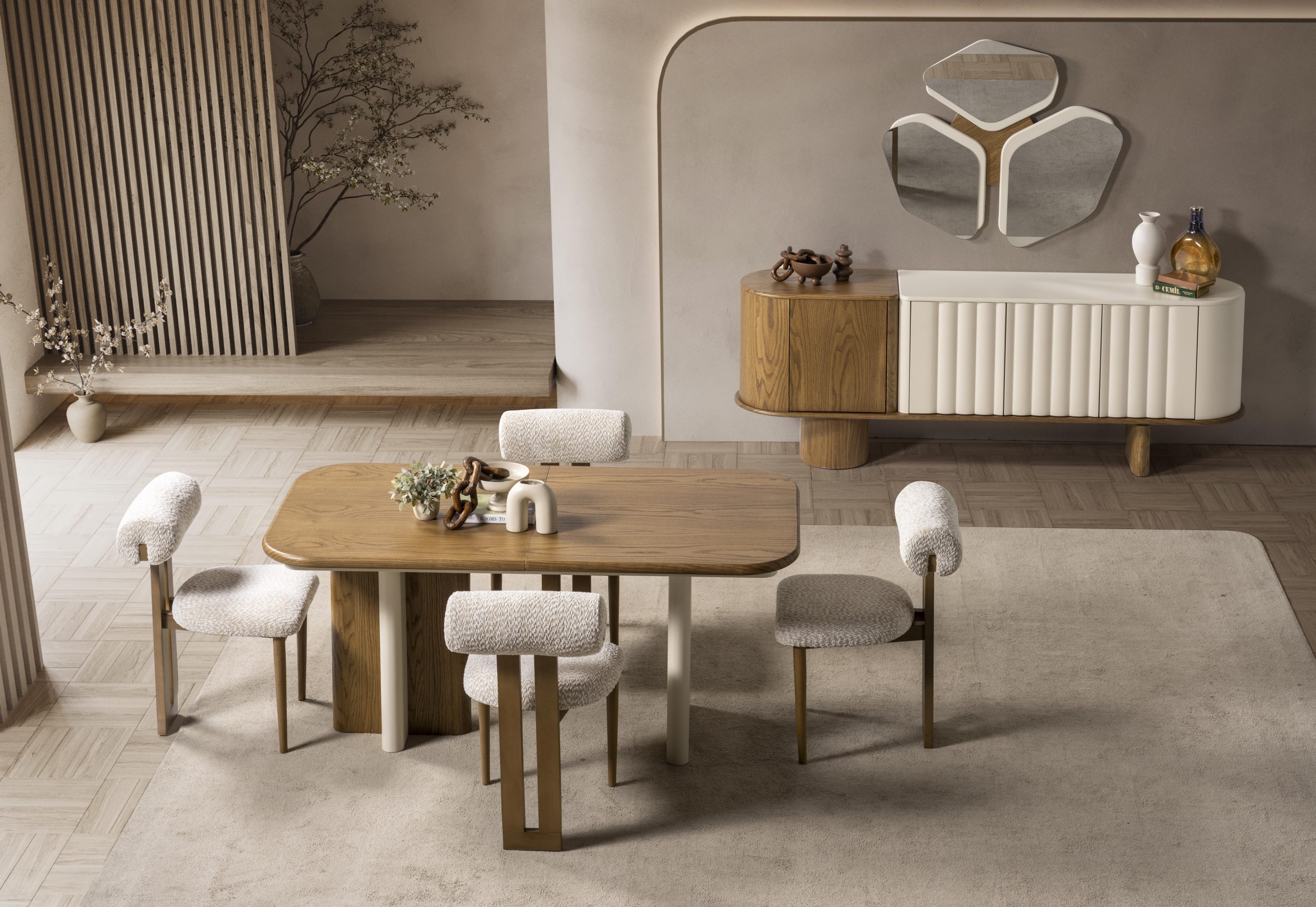 Yemek odası takımlarında TV ünitesi, orta sehpa, aksesuar vb. detaylar fiyata dahil değildir.