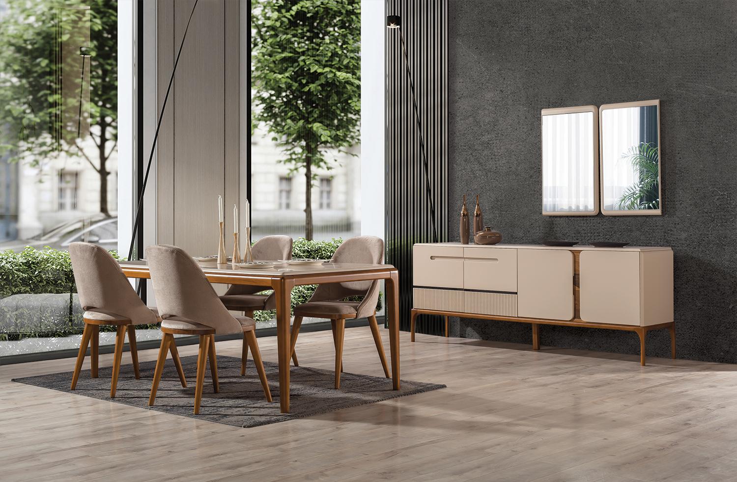 Yemek odası takımlarında TV ünitesi, orta sehpa, aksesuar vb. detaylar fiyata dahil değildir.