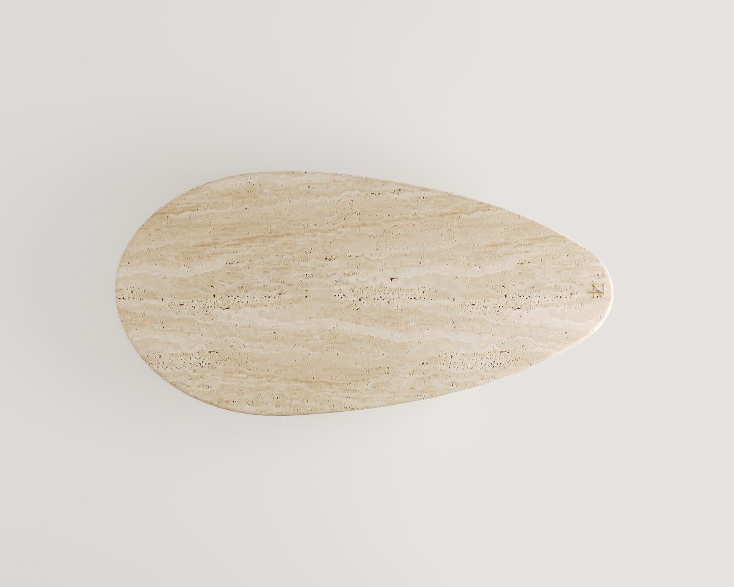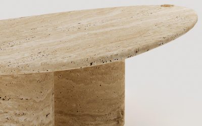 2 Silindir Ayaklı Damla Tablalı Traverten Orta Sehpa