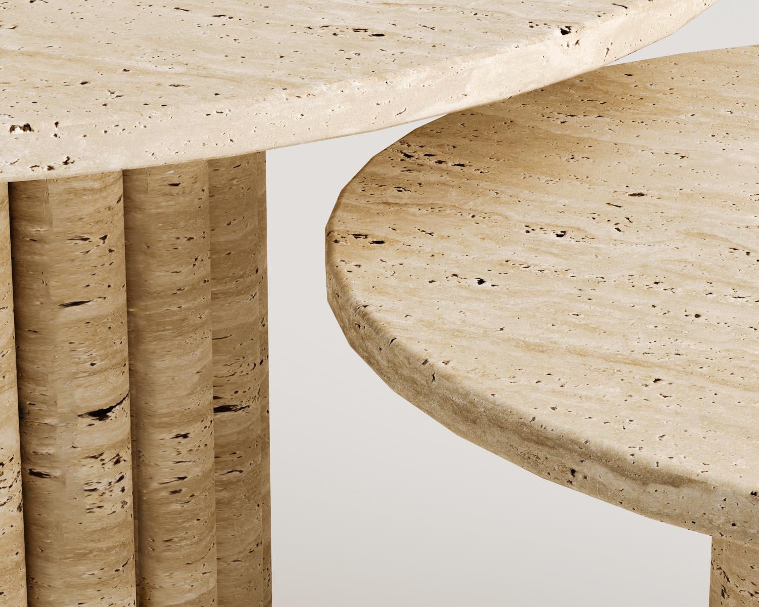 Taş, doğal dokusu ve eşsiz desenleriyle her ürünü benzersiz kılar. Yüzeyi mat ve hafif gözenekli olup, tercihinize göre cilalı veya gözenekleri kapatılmış şekilde sipariş edilebilir. Doğal taşın sunduğu estetik ve dayanıklılıkla mekanınıza zarif bir dokunuş katacaktır.
